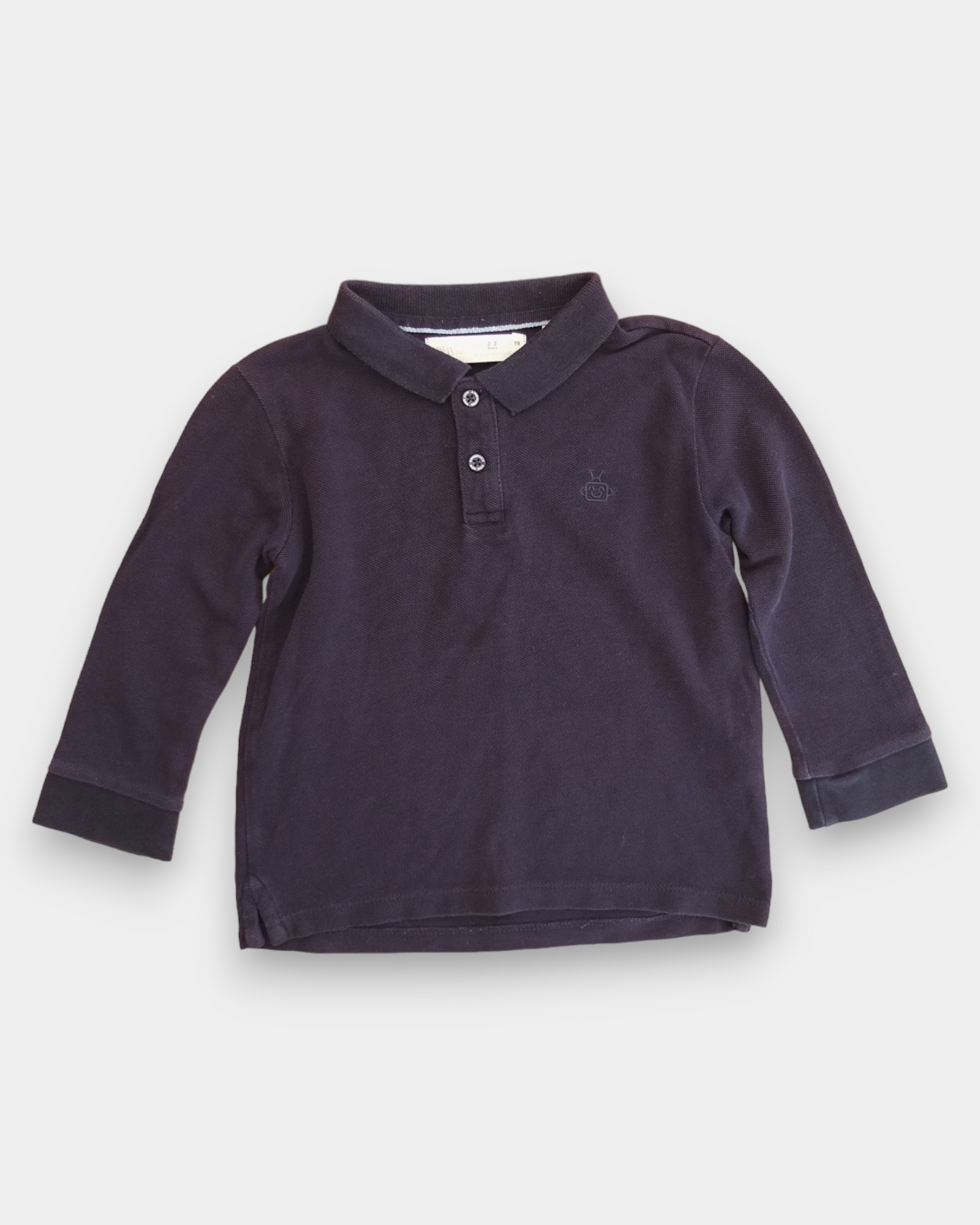 Pikétröja med lång ärm, marinblå, krage med knappslå och diskret logotyp på bröstet.