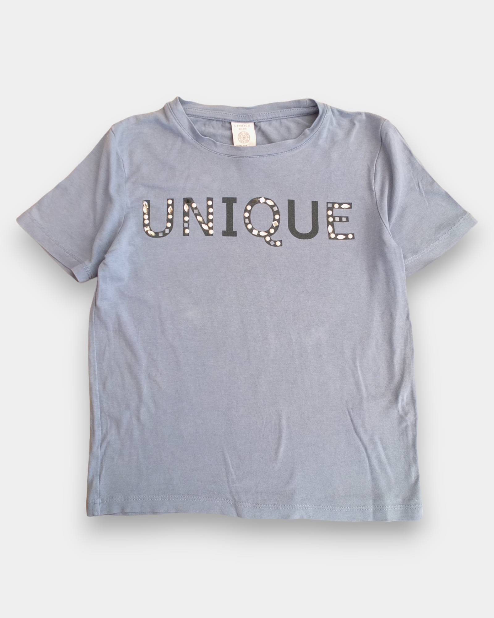Kortärmad t-shirt med rund hals och dekorativa detaljer på framsidan.